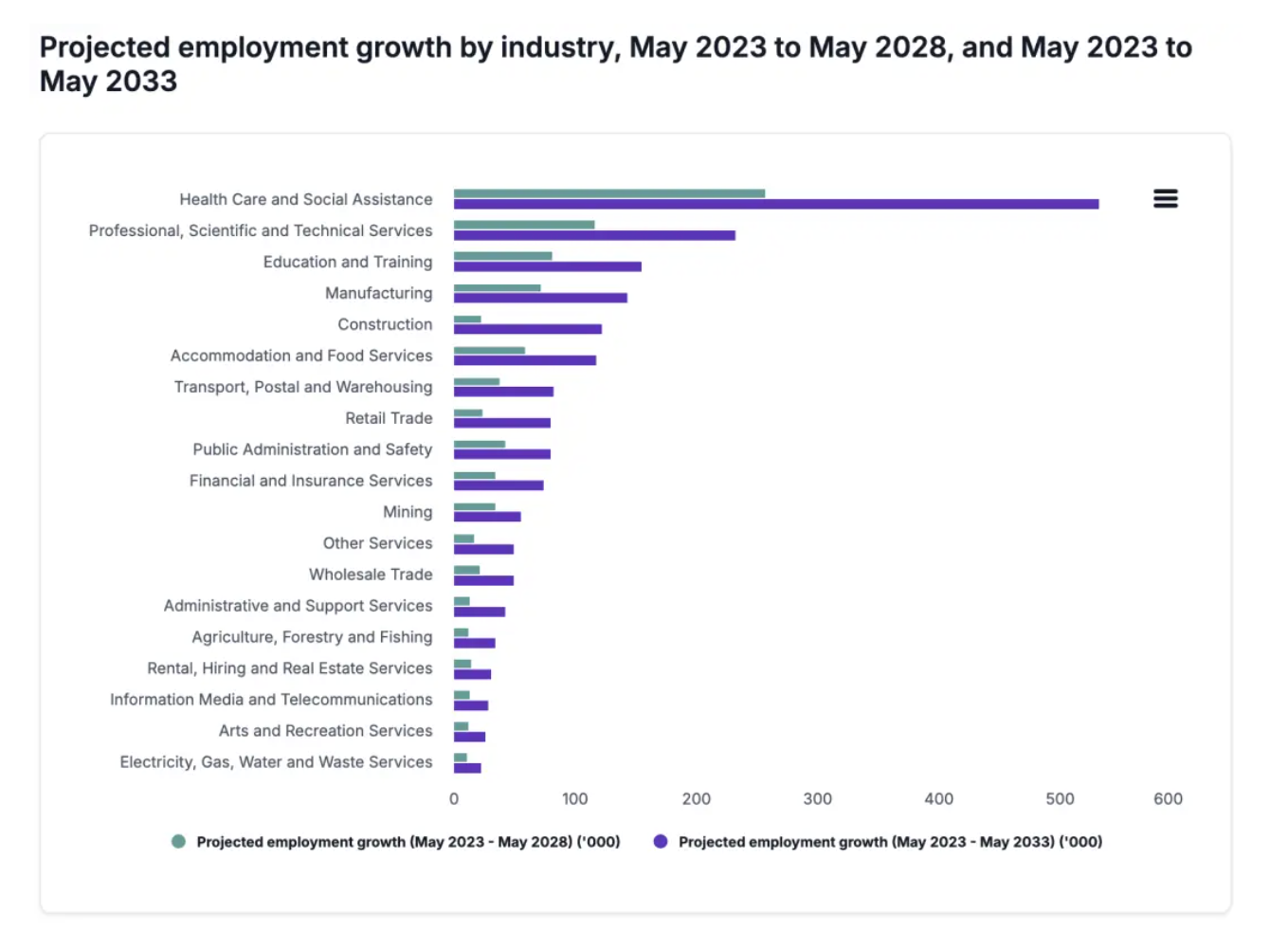 According to the latest employment projections from Jobs and Skills Australia, construction is set to grow by 122,600 jobs between May 2023 and May 2033 — making it the fourth fastest-growing industry after health care, science and technology, education, and manufacturing.