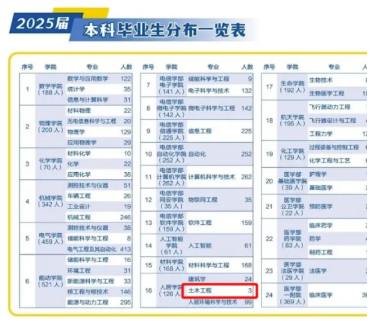 At Xi’an Jiaotong University, a top-tier C9 university, only 24 students are set to graduate with a degree in architecture in 2025, and just 3 in civil engineering.