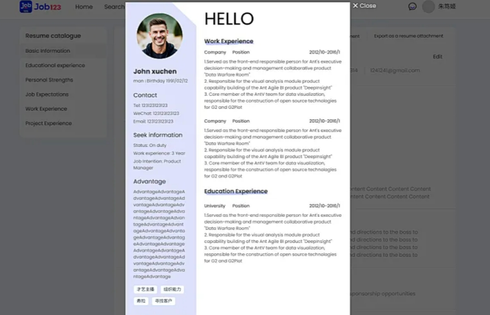 ①求职者填写基础信息后,自动生成简历,并免费开放下载权限,为多线程求职赋能;